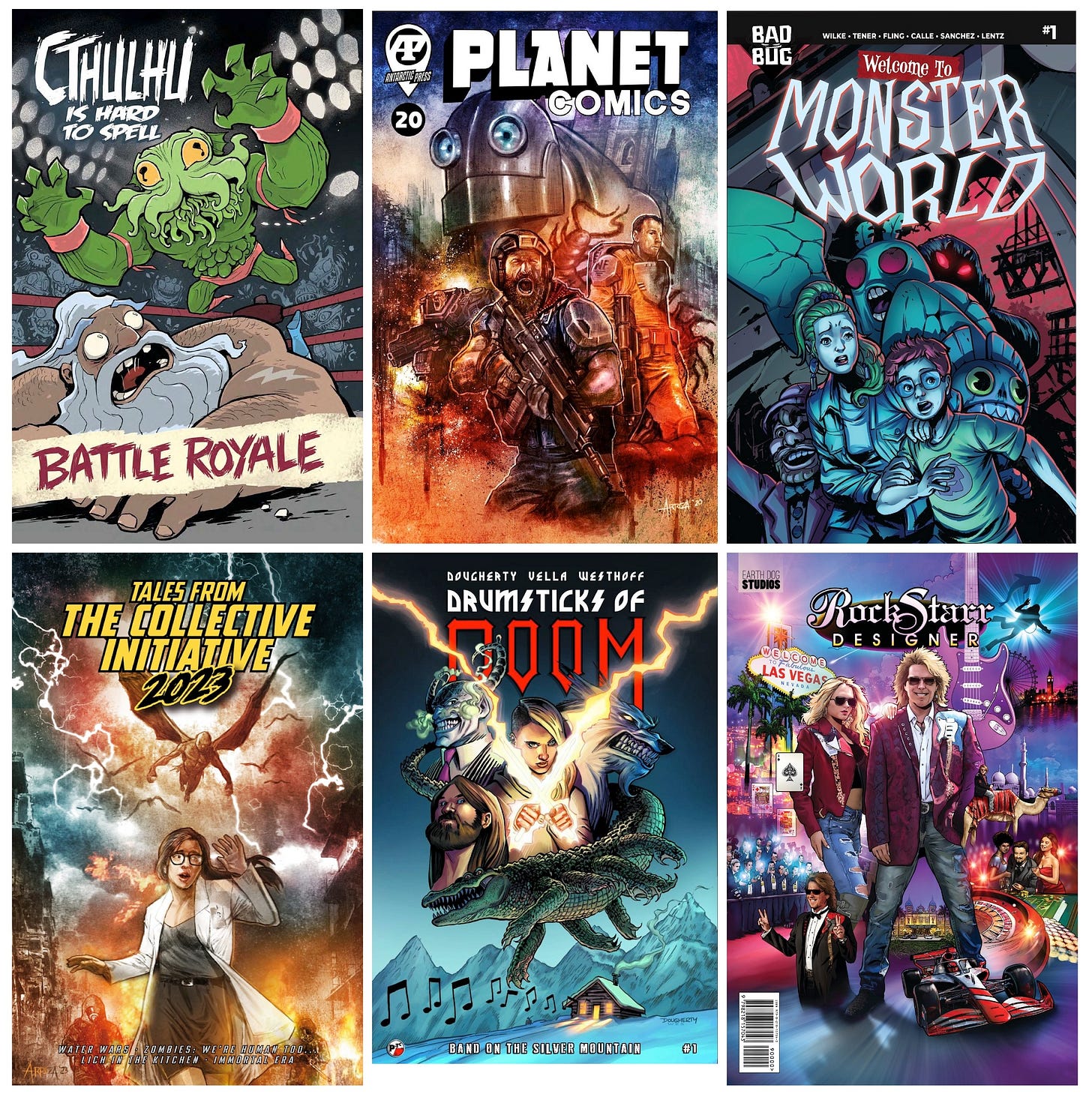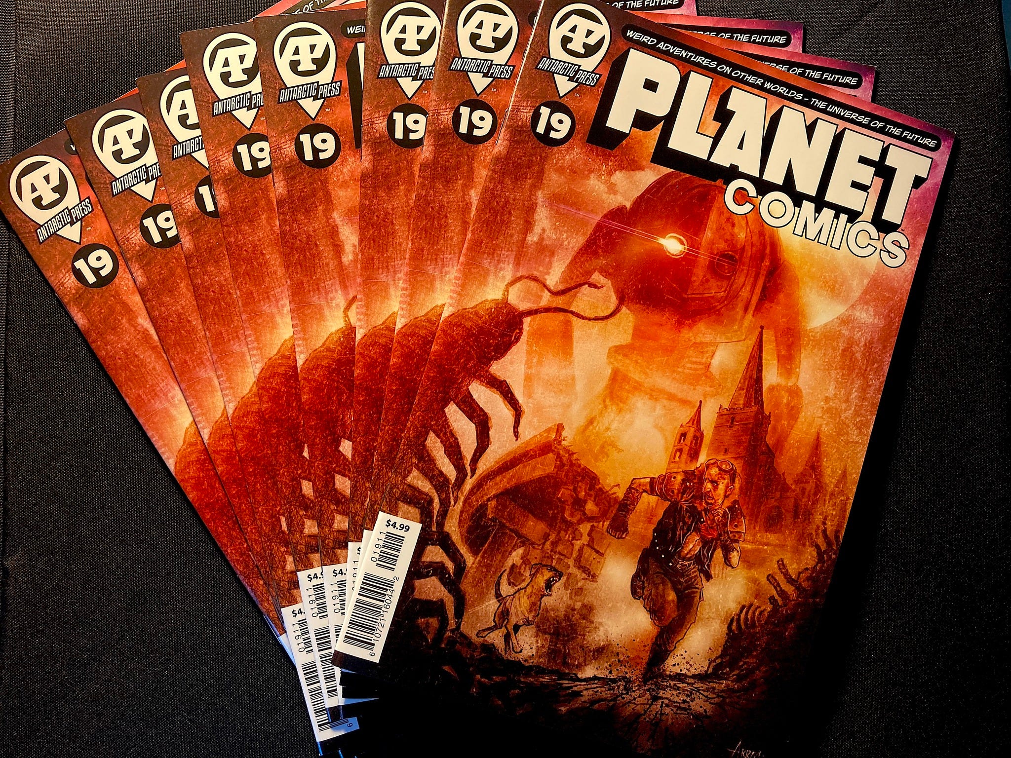 I submitted several short stories to ANTARCTIC PRESS, including “The Hunchback (of Theological Quadrant 19)”, “Natural Life”, and others. Again, national exposure adds a small layer of street credibility for most writers. After being published in several of the PLANET COMICS books, I leveraged my writing credits toward being invited as a “featured guest” at comic conventions. Being a featured guest basically means that you get comped a free table or booth. Our strategy worked. Having credits from national publishers opens doors. If you have actual ComicVine credits or a podcast, your odds of being a guest are even better. I have made some great friends in the AP Collectors groups as well. Really a fun bunch. Antarctic Press offers a wide range of options available to many contributors.