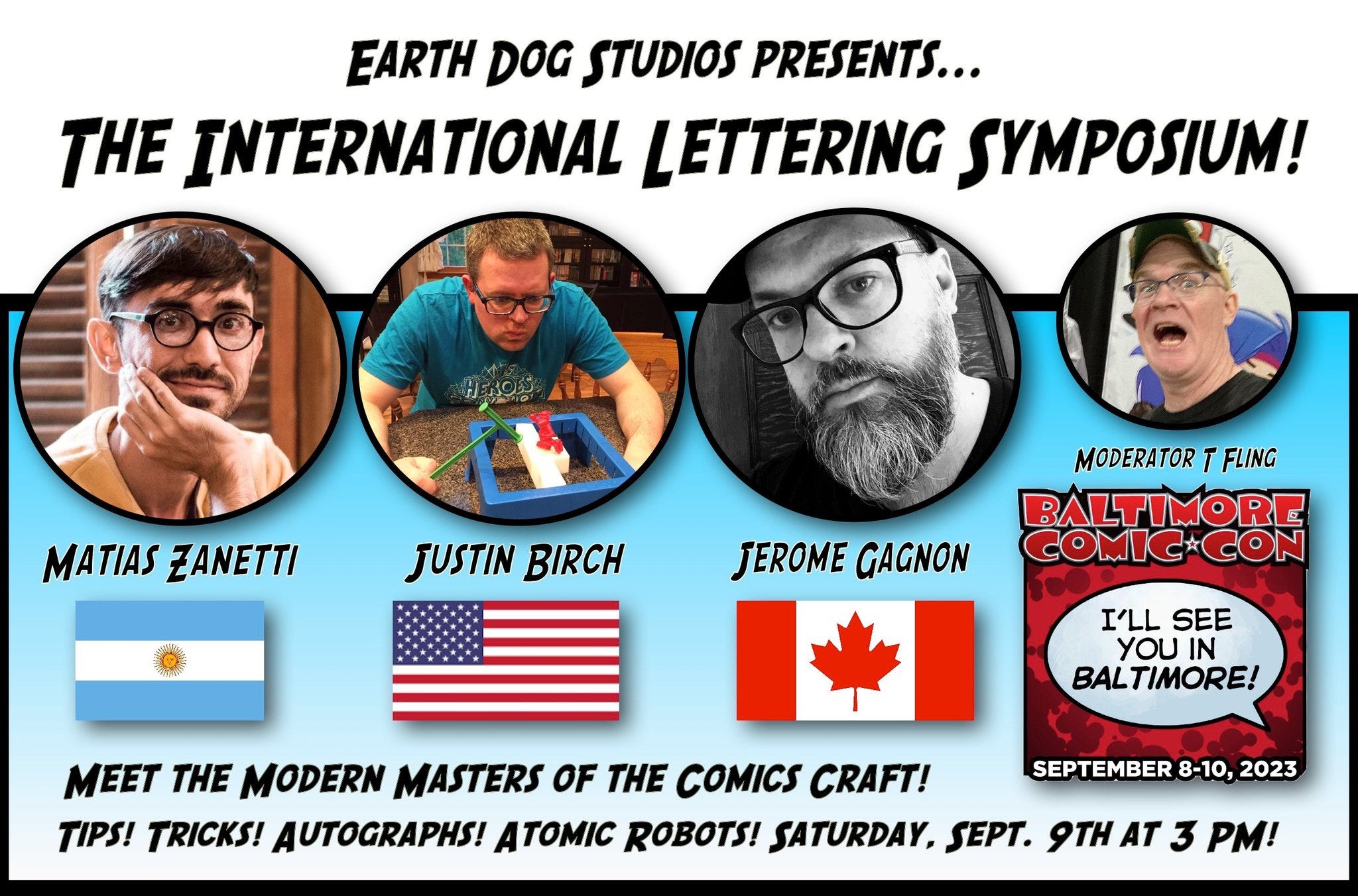 I submitted a short story, “Ascendance of the Pteromorph”, to Travis Gibb and his crew. Travis Gibb is a force in the indie community, and he does a great deal when it comes to supporting other creators. His Ringo-nominated anthologies are well-regarded by modern creators and publishers alike. After we were included in his anthology in 2023, the team held an international signing at Baltimore Comic Con! Attending the event: Heather Gibb, Jerome Gagnon, Justin Birch, Matias Zanetti, and even David Starr showed up! This professional crew helped us level up our convention presence.